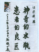 凡尊重中國古代養生智慧的患者,堅持“已饑方食”和定時主動補水者,均可祛病康復。如牡丹江醫學院87歲的張鵬圖飲用半年后高血壓未痊愈,陸江與他通話交流,了解他原先每日主食4兩,建議他用“已饑方食”減少主食肉食量,他理解后,將每日主食減為3兩,少吃兩塊肉,飲用一年治愈26年的冠心病和高血壓。他2003年5月31日來信說:“飲用卓康小分子團水是根治高血壓、冠心病、糖尿病的一把金鑰匙,是填補醫學空白,為人類造福,應推廣該產品?!?/strong>